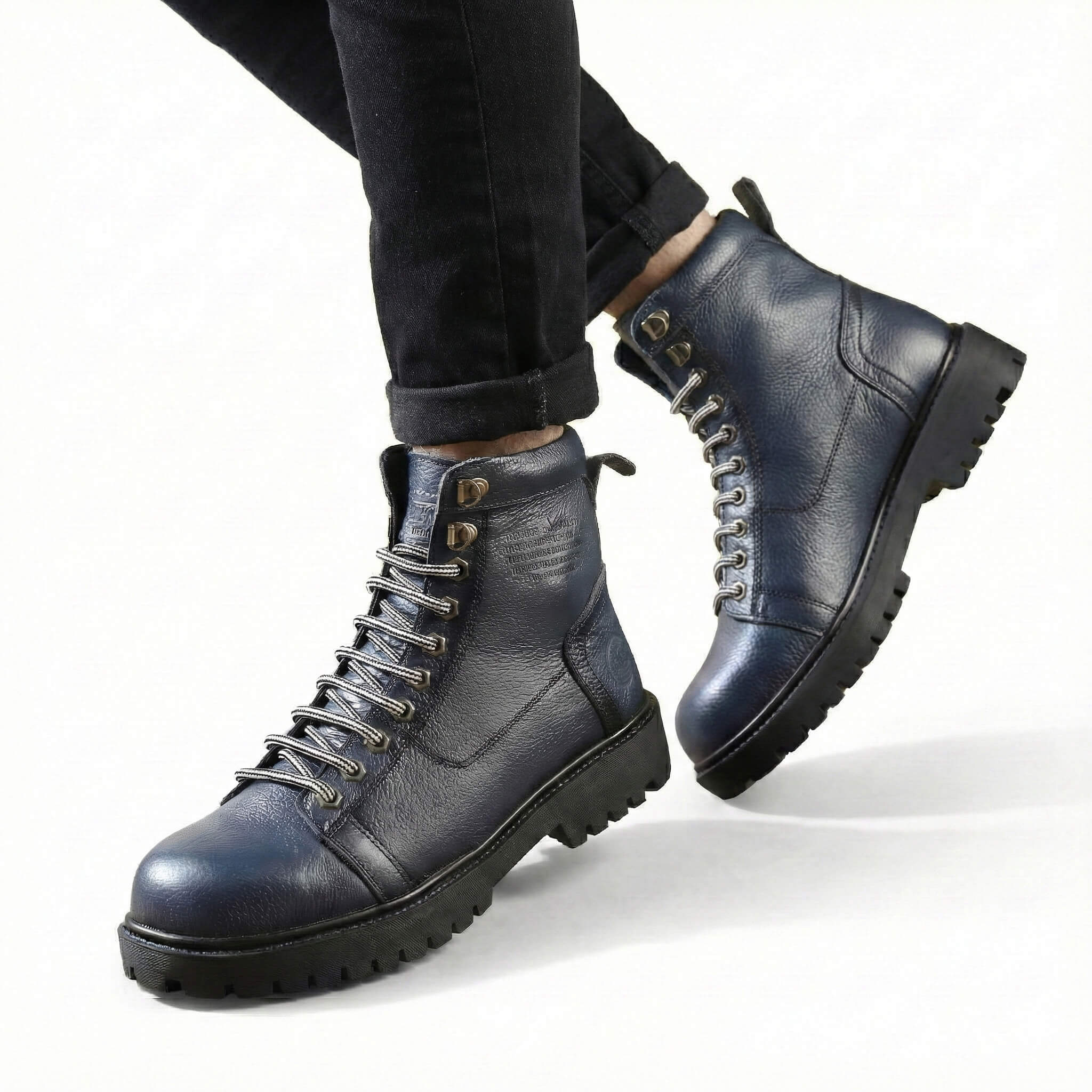 سيفتي ( القائد )  بدون سوسته كحلي جلد طبيعي ومقدمة حديد SF-01