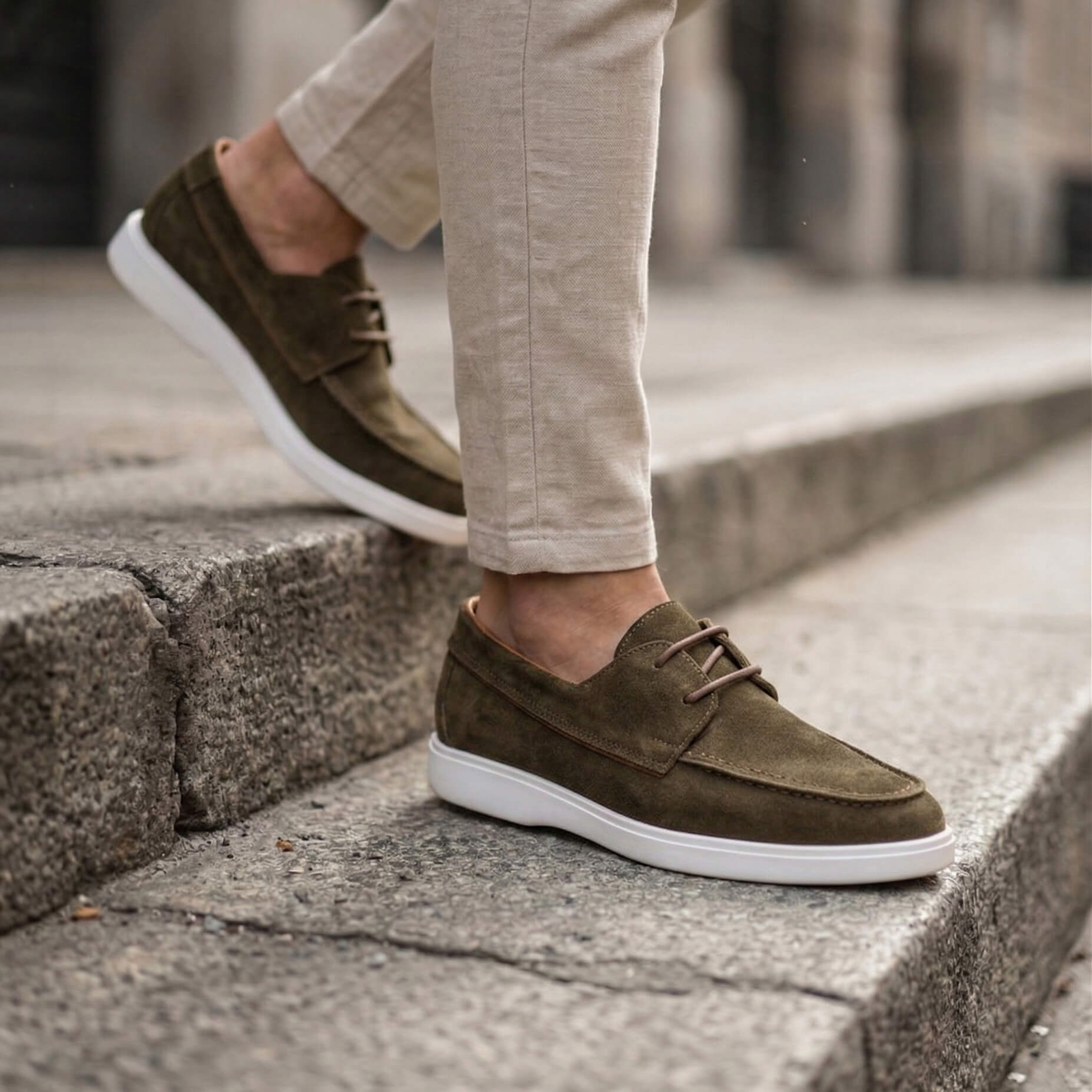 خامات طبيعية 100%: الجزء العلوي مصنوع من أجود أنواع الشمواه (الجلد الطبيعي) الذي يمنح الحذاء مظهراً مخملياً جذاباً ولمسة من الفخامة التي تدوم طويلاً.
