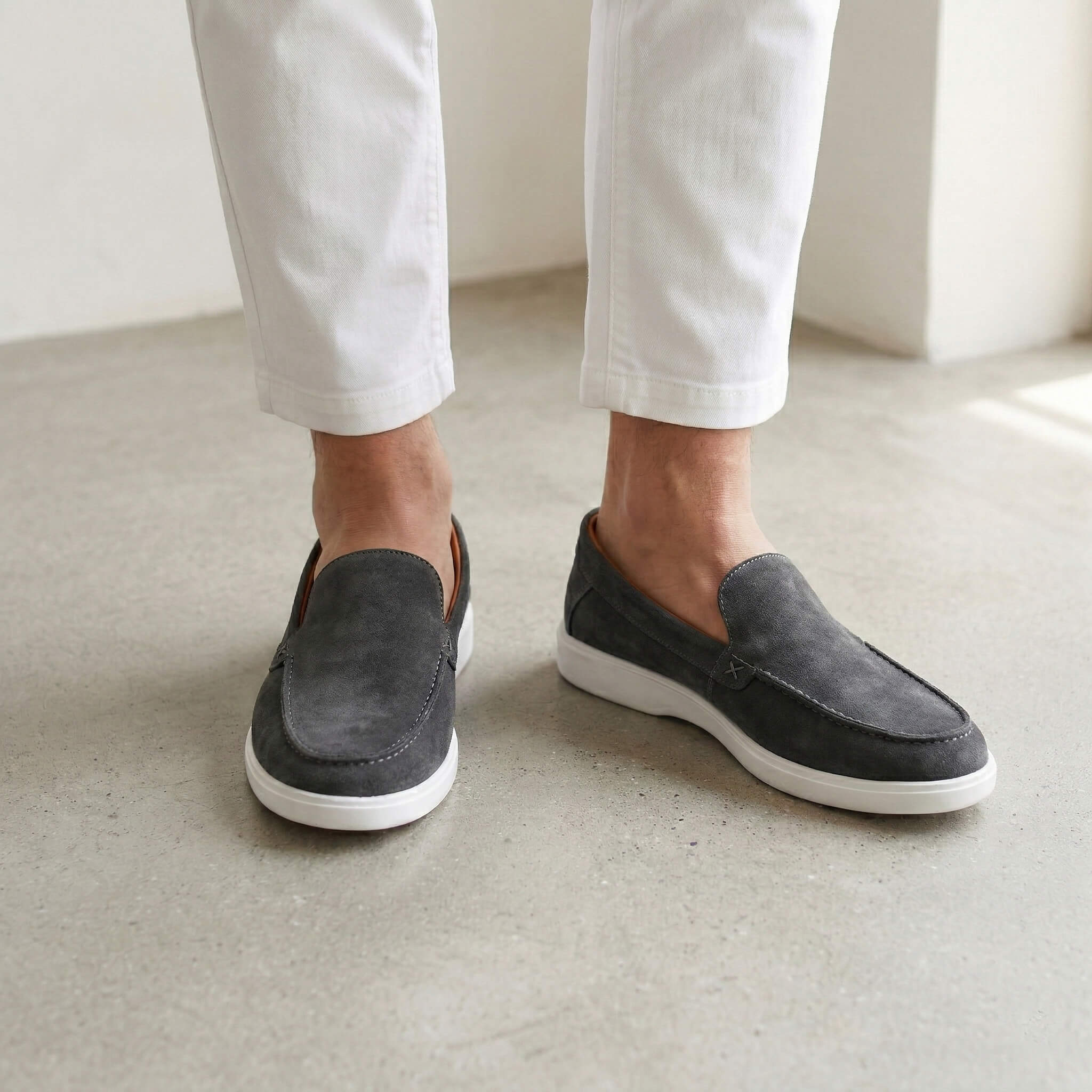 • خامات طبيعية 100%: الجزء العلوي مصنوع من أجود أنواع الشمواه (الجلد الطبيعي) الذي يمنح الحذاء مظهراً مخملياً جذاباً ولمسة من الفخامة التي تدوم طويلاً.