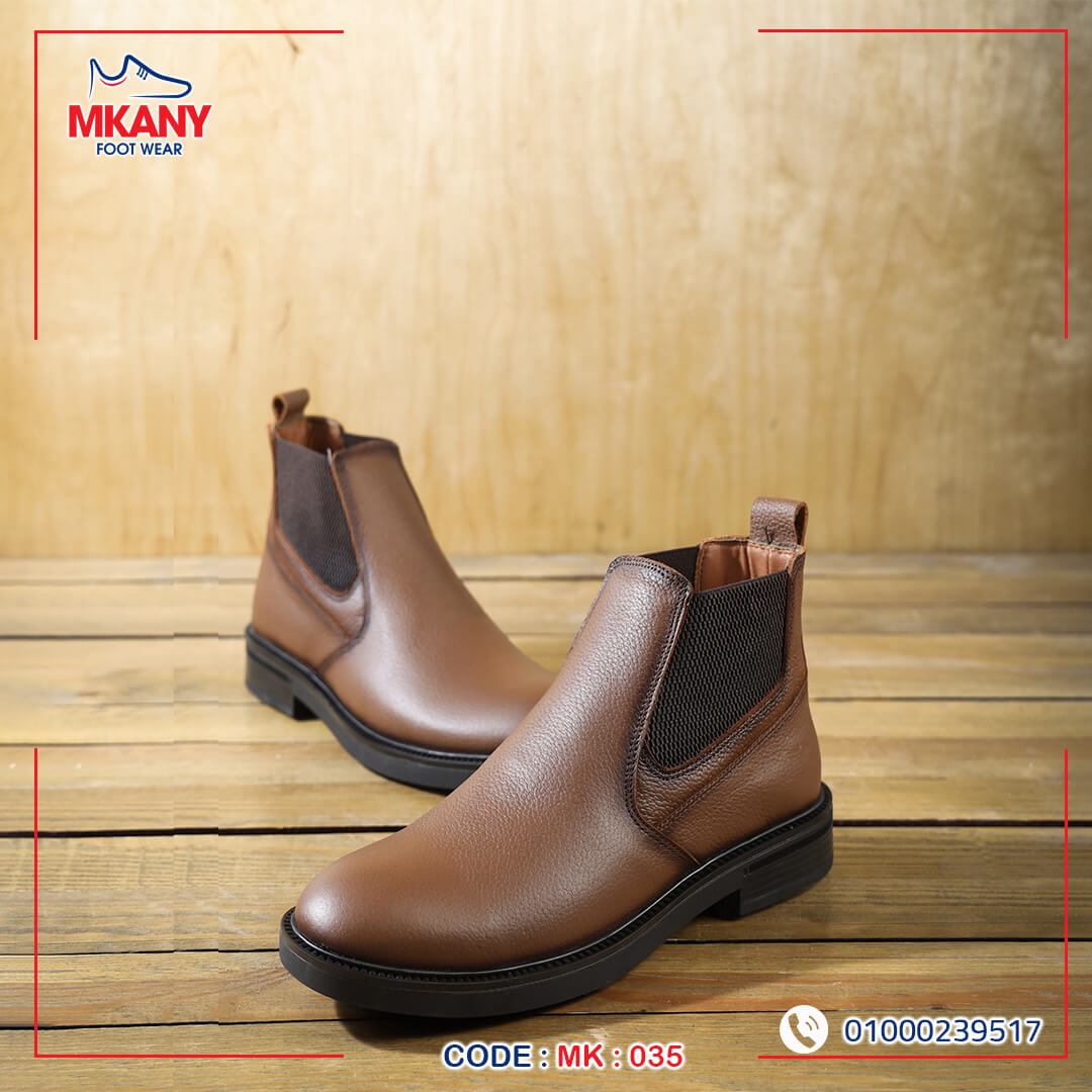 هاف بوت من الجلد الطبيعي بجودة عالية،و مع استك جانبي مزدوج لسهولة الارتداء.