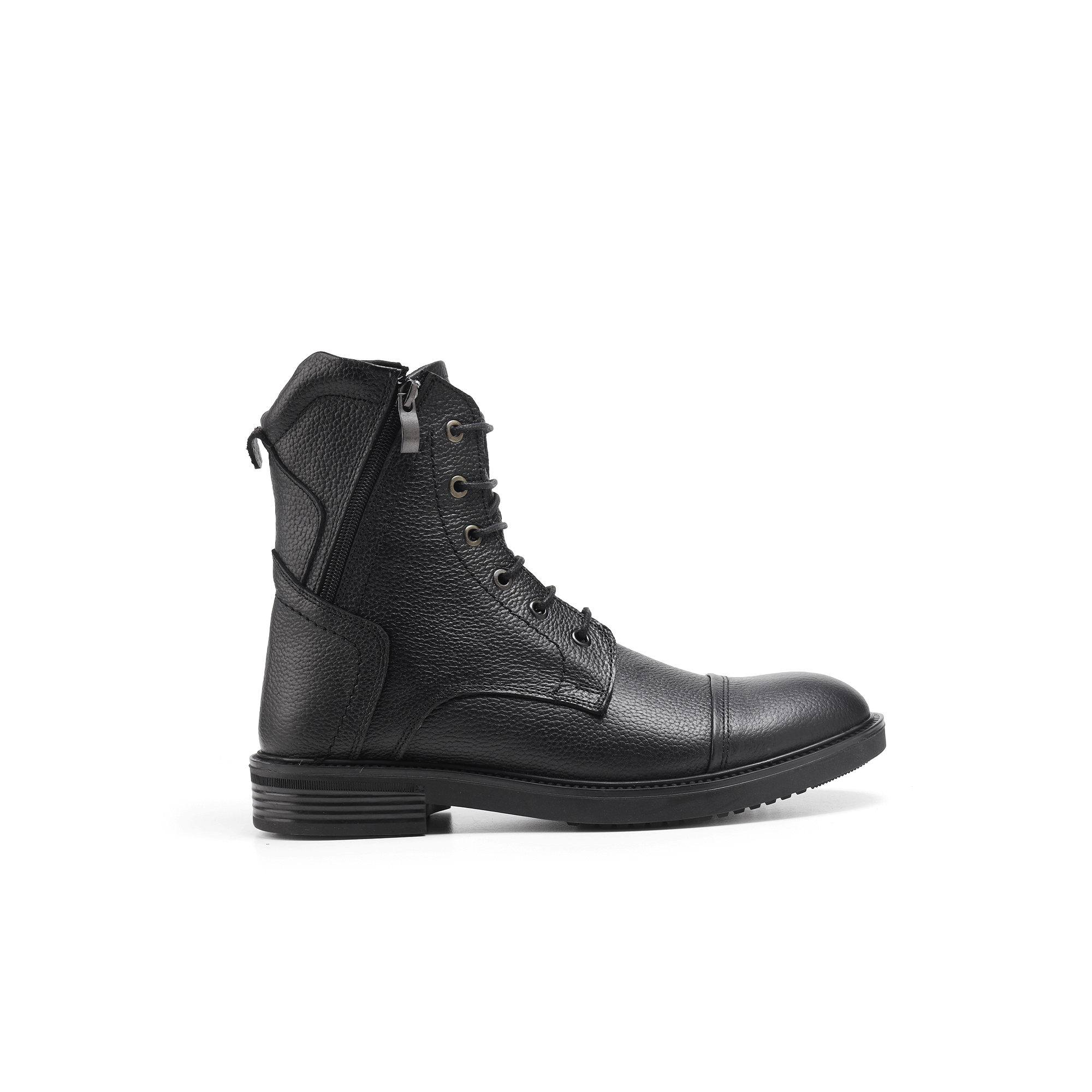 هاف بوت من الجلد الطبيعي بجودة عالية، مزود بـ 2 سوسته لسهولة اللبس.