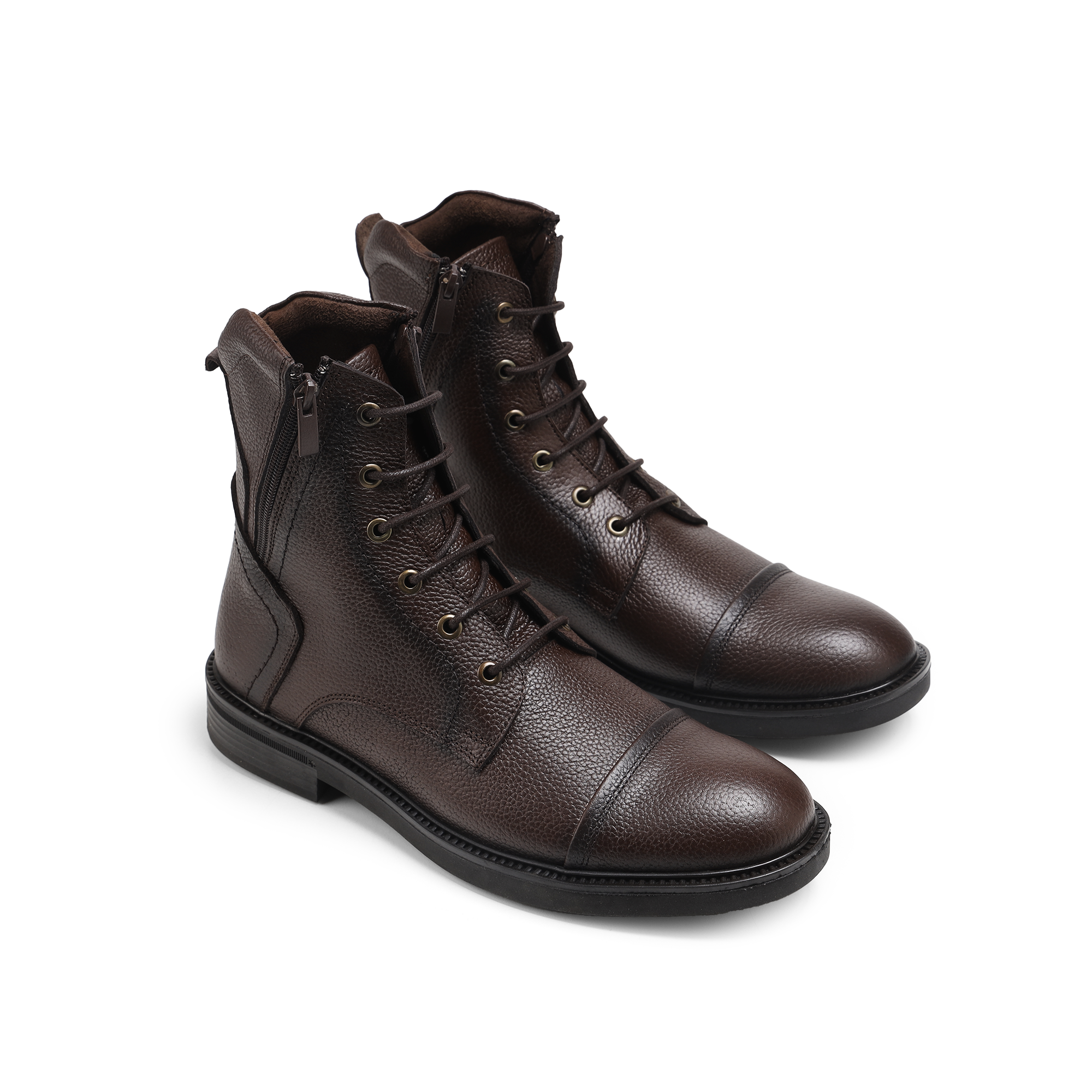 هاف بوت من الجلد الطبيعي بجودة عالية، مزود بـ 2 سوسته لسهولة اللبس.
