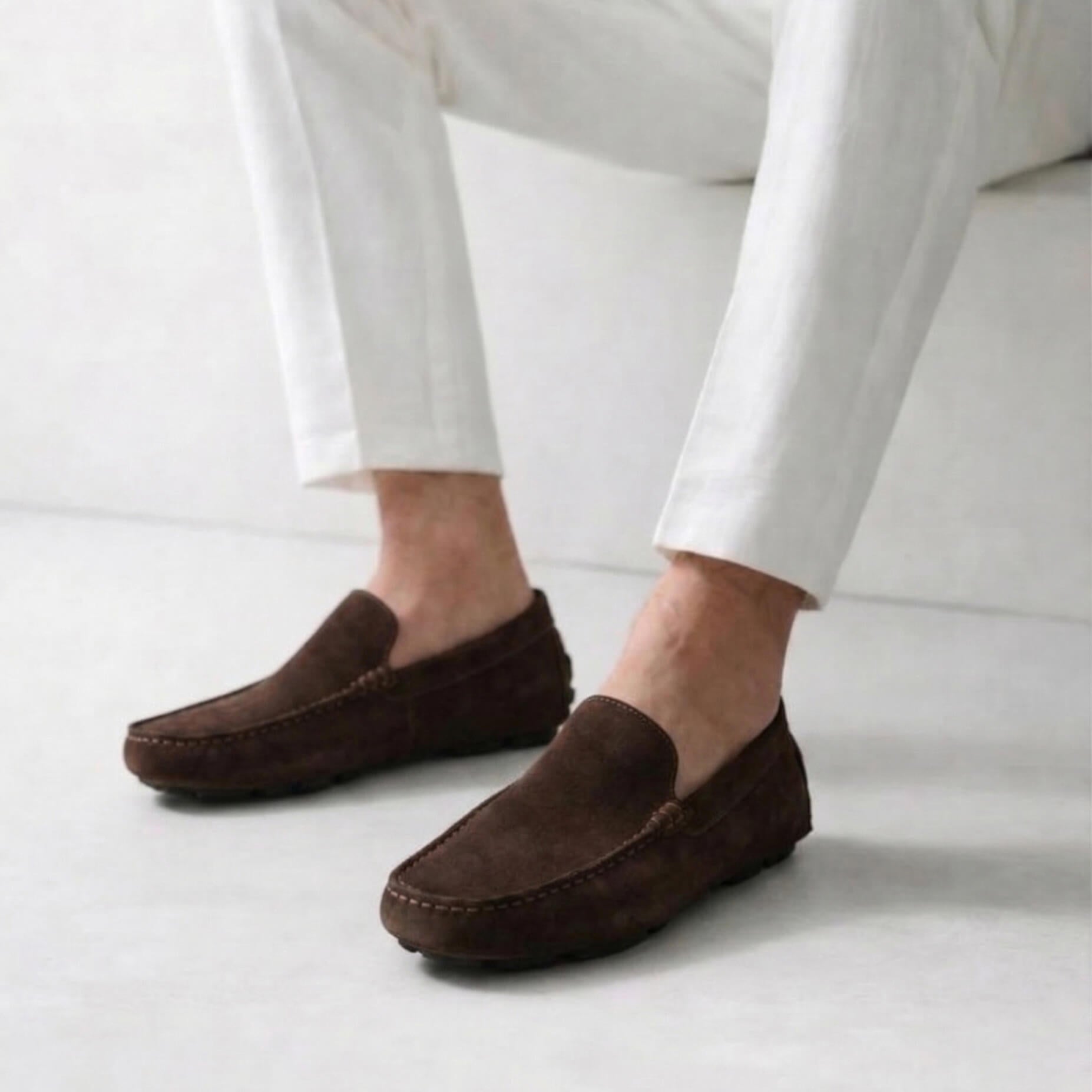 • خامات طبيعية 100%: الجزء العلوي مصنوع من أجود أنواع الشمواه (الجلد الطبيعي) الذي يمنح الحذاء مظهراً مخملياً جذاباً ولمسة من الفخامة، .